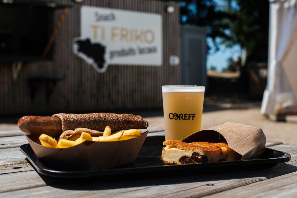 Galette de Keltia Nevez (Huelgoat), saucisse par Ronan Le Creff (Plusquellec), bière Coreff (Carhaix) et le Far breton de la boulangerie Roudour (Guerlesquin)